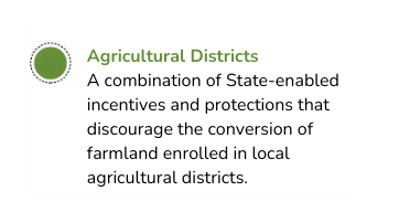 Continue to support agricultural conservation easement programs by finding ways to increase capacity at local land trusts, and implementing the Agricultural and Farmland Protection Plan.