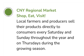 Located at the crossroads of Upstate New York, local access to labor, markets, and distribution infrastructure is robust. The Central New York Regional Market (link), local farmers markets, and area farmstands (link to Onondaga Grown!) provide local food access to many areas of the County.