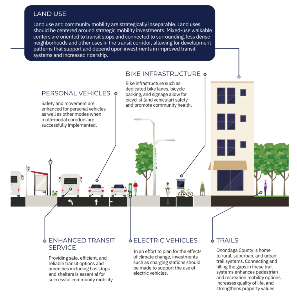 Community Mobility is an important component of maintaining the quality of life and economic competitiveness of Onondaga County. There are multiple factors that can contribute to the modernization and development of the County’s mobility system.