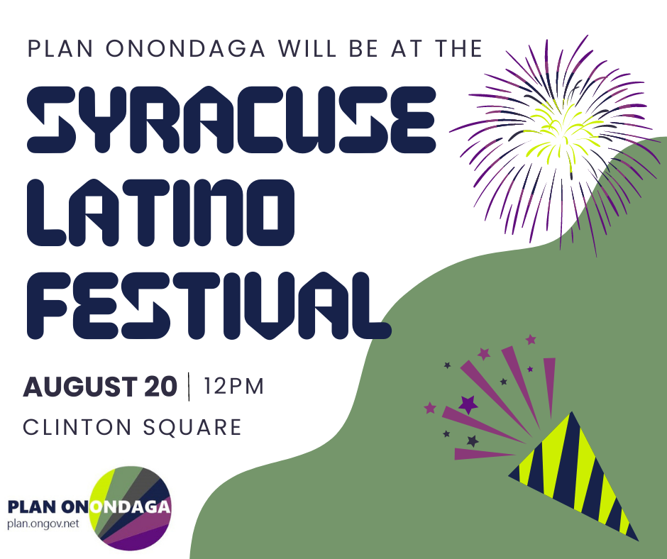 ¡Vamos a estar en el Festival Latino de Syracuse este sábado! ¡Una empleada que hable español estará en el festival para platicar sobre tu visión para el condado!